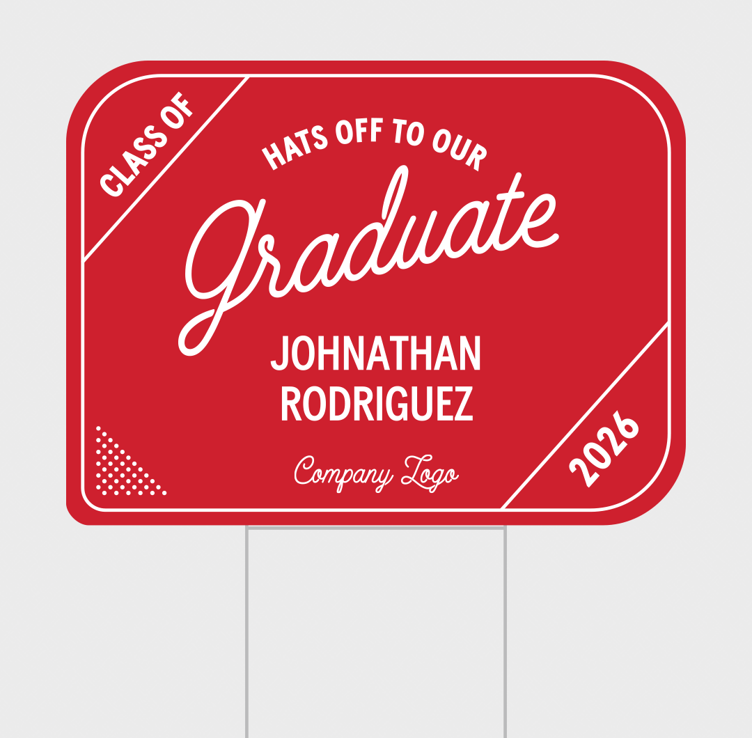Shaped like a sauce packet, and perfectly customizable with the Graduate’s name. This yard sign is designed to stand out from the curb and turn heads as you focus on serving your community. Accompanied by one 9 gauge galvanized steel stake per sign ordered.